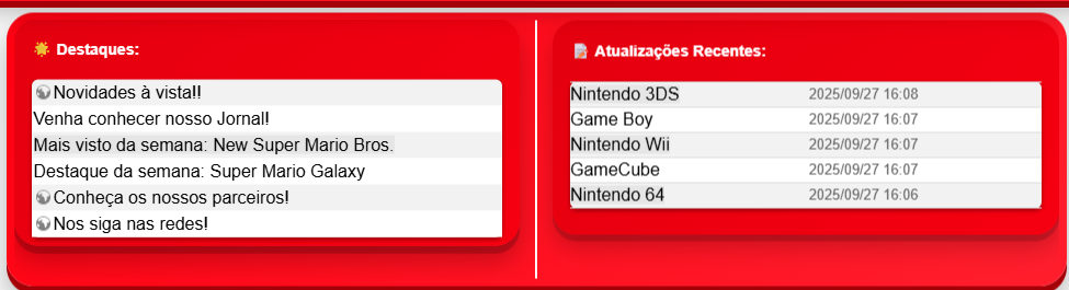 Chegou o espaço perfeito para você ficar ligado nas novidades quentes! No menu de destaques da semana, você encontra os conteúdos mais legais, curiosidades, análises de jogos, matérias especiais e fatos históricos da Nintendo. Tudo isso atualizado constantemente para que você esteja sempre à frente, como um verdadeiro insider do universo gamer. É o jeito mais rápido de mergulhar na comunidade e sentir a emoção de cada lançamento, evento ou curiosidade.